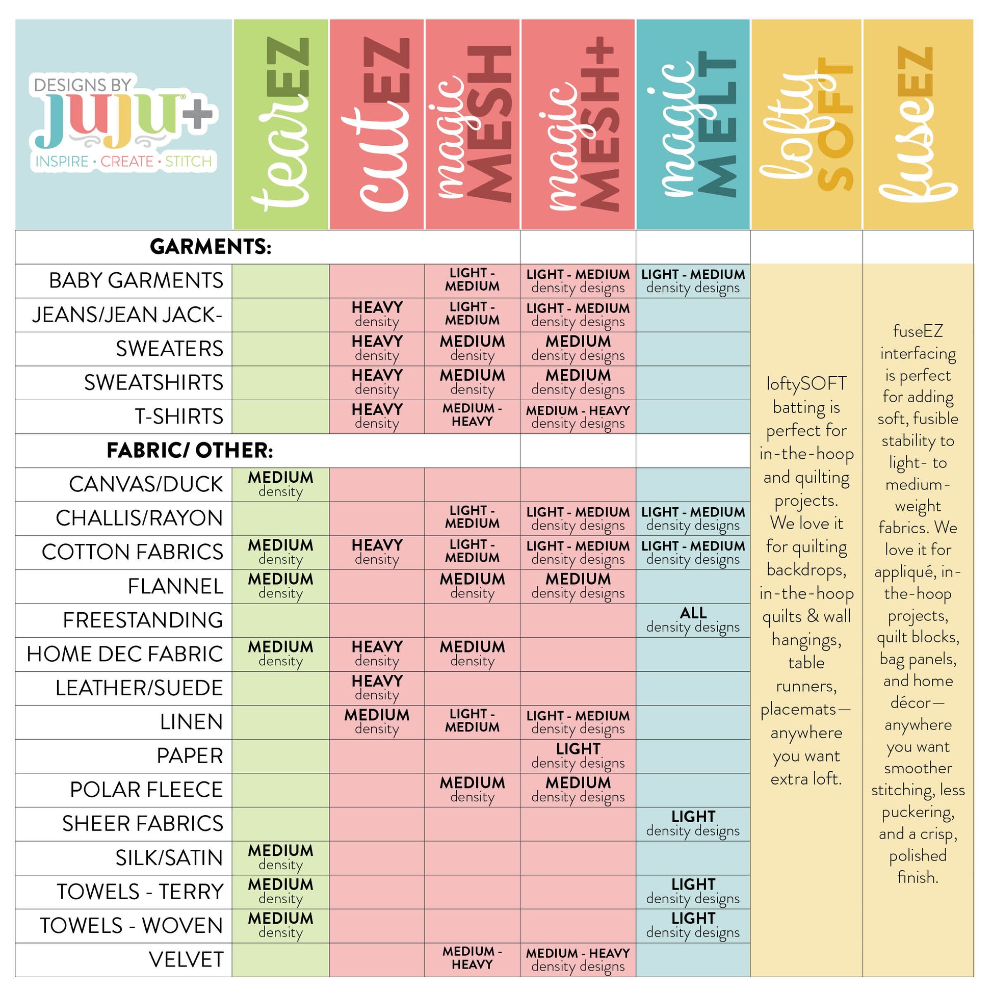 Need a stabilizer that’s soft to the touch yet strong enough to support your stitches? magicMESH Cut-Away Embroidery Stabilizer delivers soft, reliable, and invisible support—making it our go-to choice for flawless Designs by JuJu in-the-hoop projects, as well as garments, baby items and other lightweight fabrics where you don't want extra bulk.
